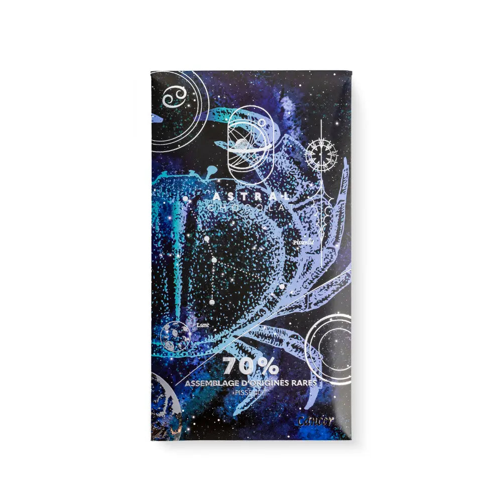 Sous le signe du Cancer, symbole de sensibilité et de profondeur émotionnelle, découvrez une tablette de chocolat qui incarne parfaitement cette énergie astrale.