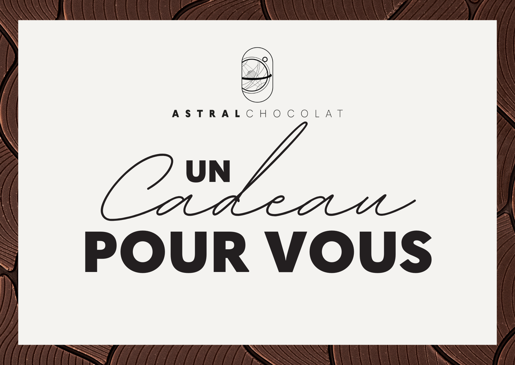 Achetez une e-carte cadeau Astral Chocolat et laissez vos proches choisir parmi nos créations artisanales sur notre e-shop. Que ce soit pour un anniversaire, une fête ou simplement pour faire plaisir, cette carte cadeau s'adapte à toutes les occasions et à tous les budgets. Un cadeau parfait pour les vrais amateurs de chocolat !