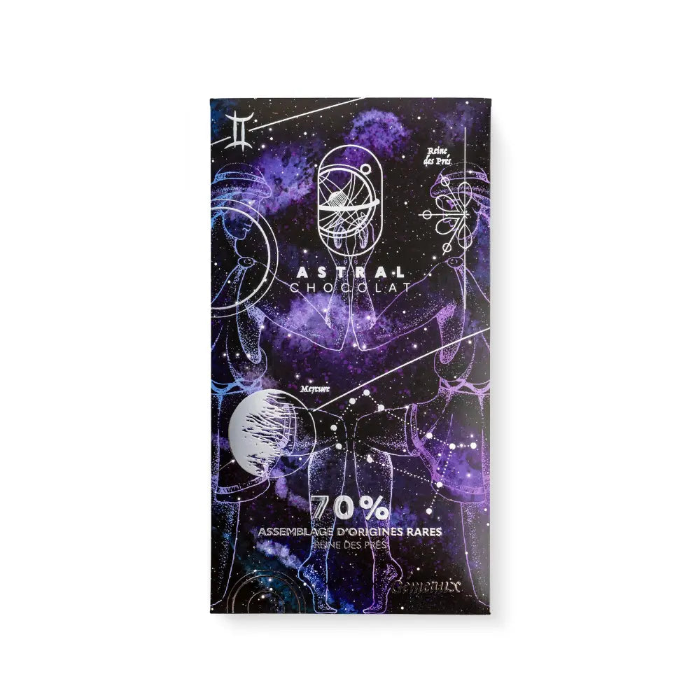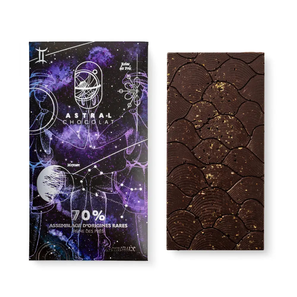 Sous le signe des Gémeaux, symbole d'adaptabilité et de vivacité d'esprit, découvrez une tablette de chocolat qui incarne parfaitement cette énergie astrale.