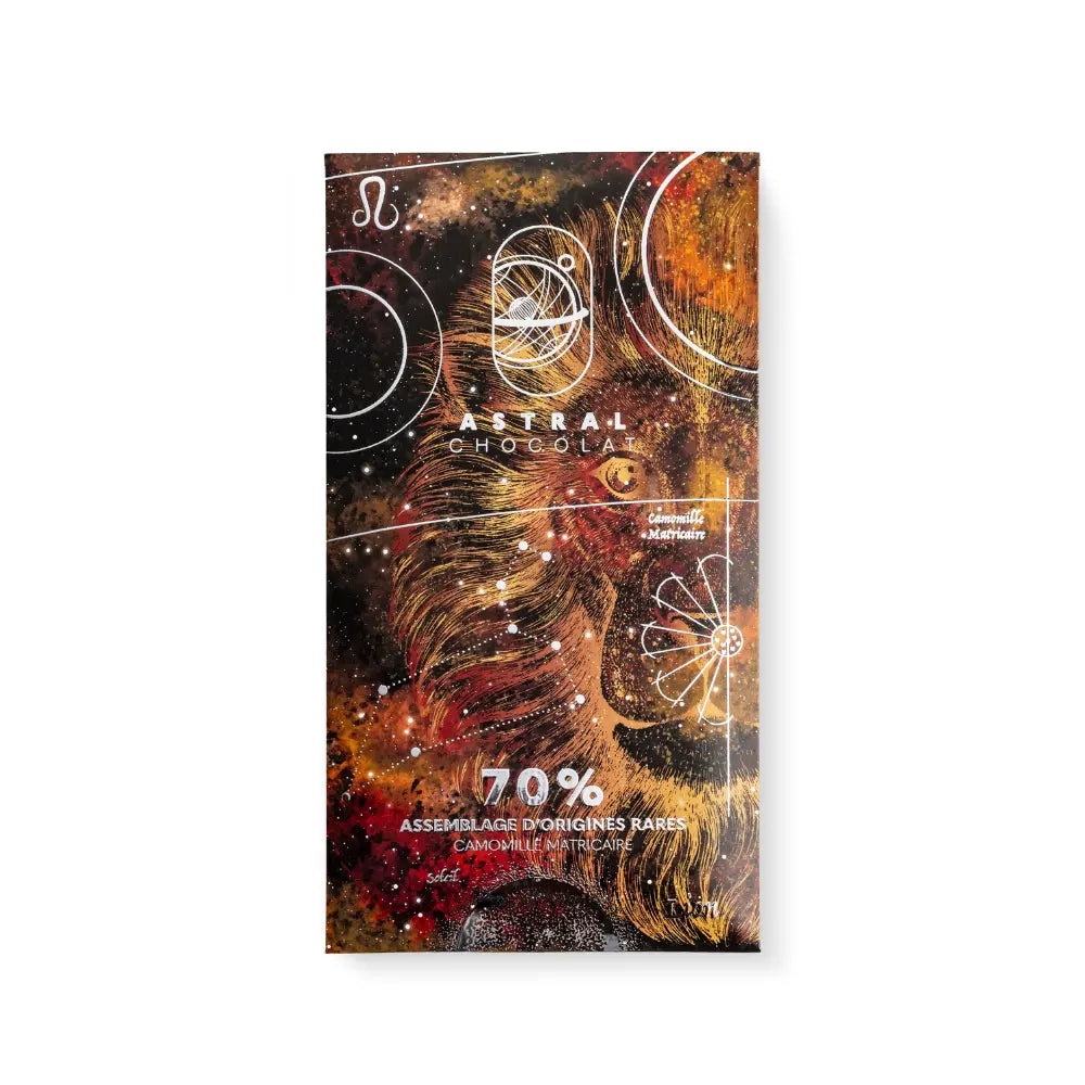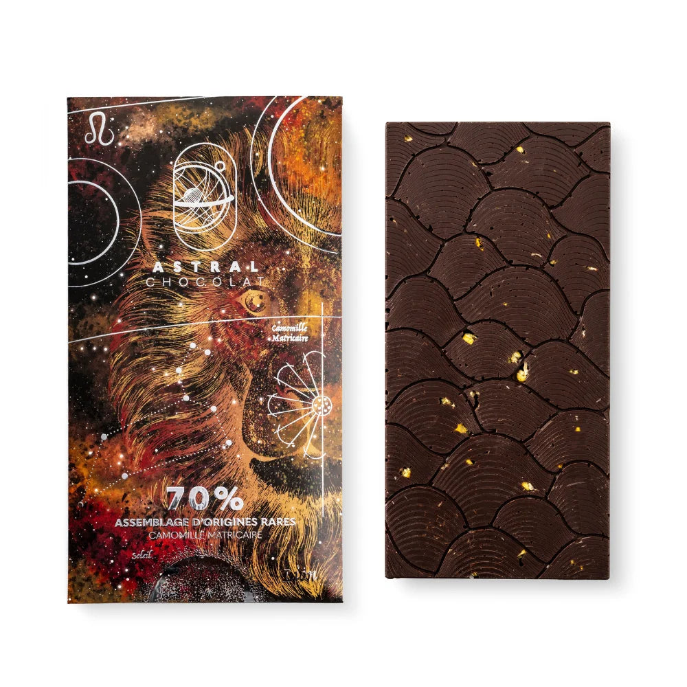 Découvrez notre chocolat noir 70%, sublimé par la camomille matricaire récoltée en été. Une symphonie de saveurs qui évoque la douceur et la chaleur de votre signe.