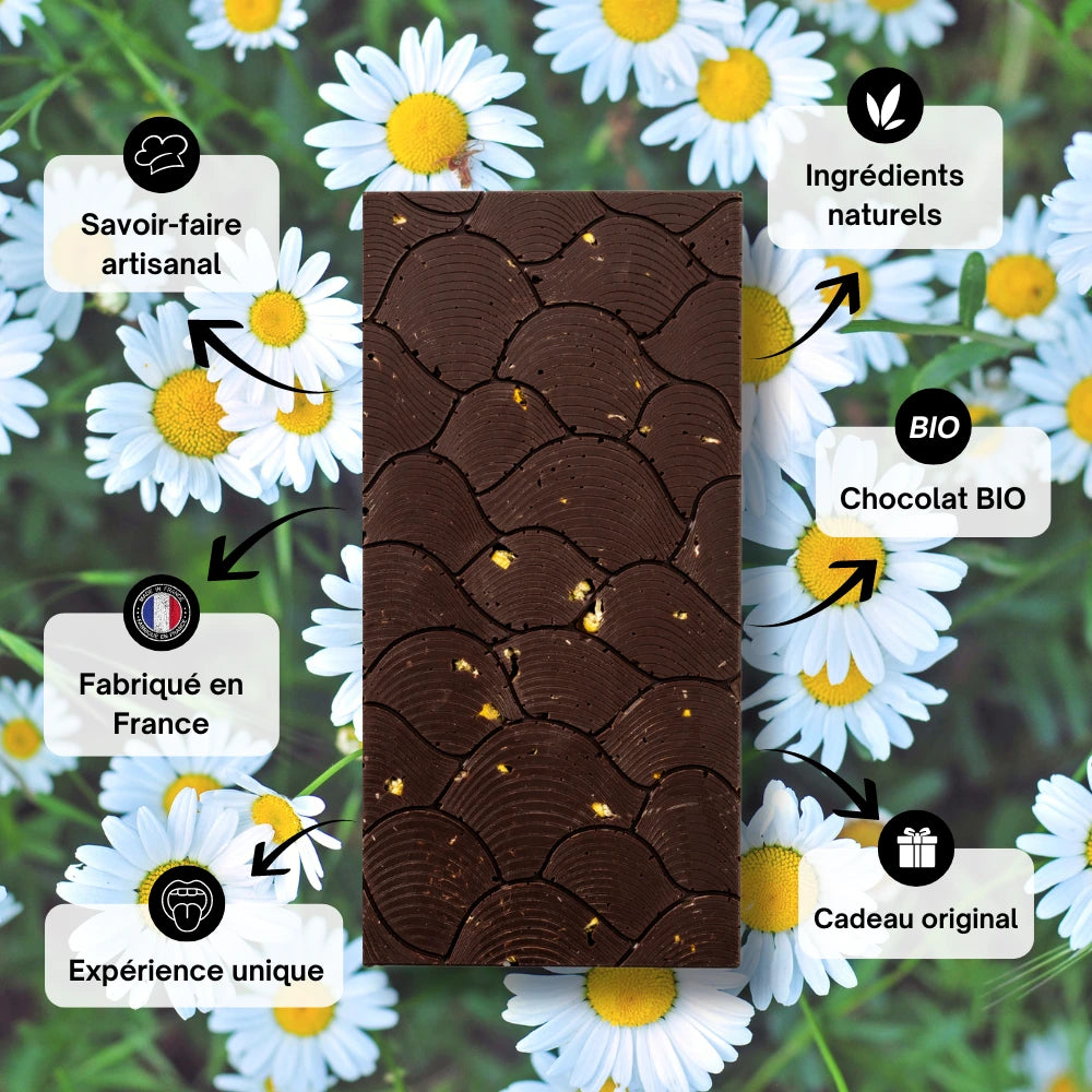 1 tablette de Chocolat Noir & Camomille (chocolat 100% BIO et packaging 100% recyclé)