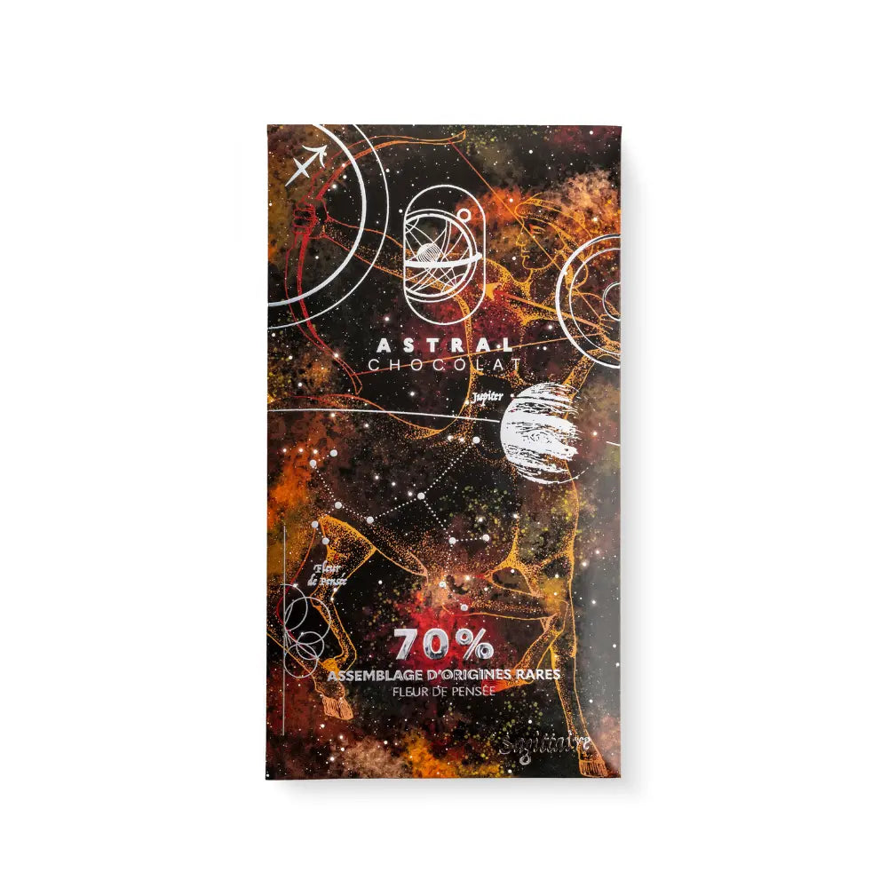 Sous le signe du Sagittaire, symbole d'optimisme et d'esprit d'aventure, découvrez une tablette de chocolat qui incarne parfaitement cette énergie astrale.