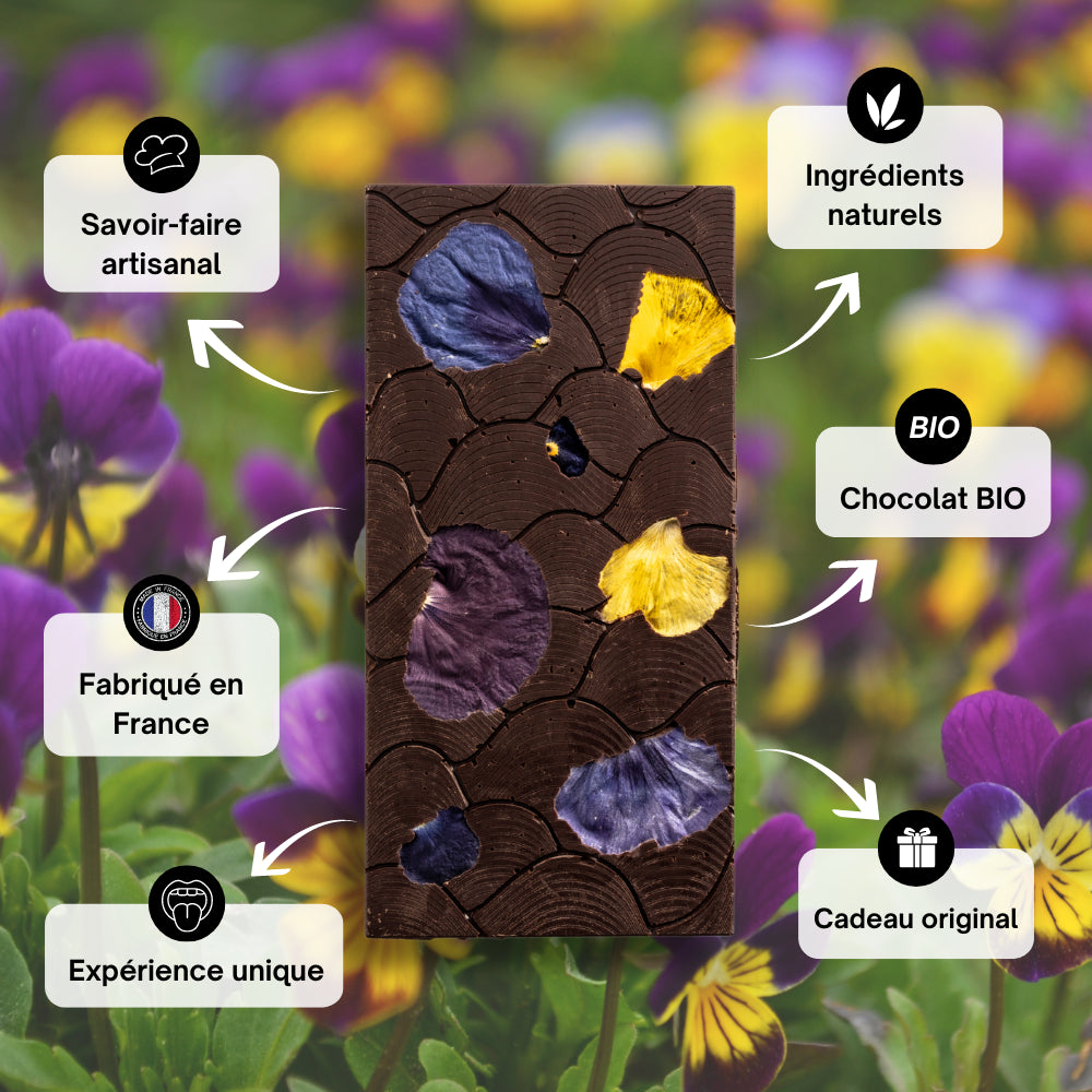 1 tablette de Chocolat Noir & Fleur de Pensée (chocolat 100% BIO et packaging 100% recyclé)