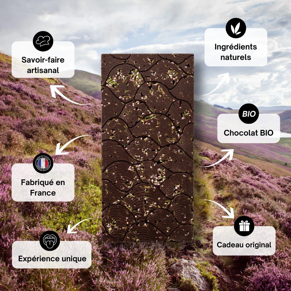1 tablette de Chocolat Noir & Fleur de Bruyères (chocolat 100% BIO et packaging 100% recyclé)